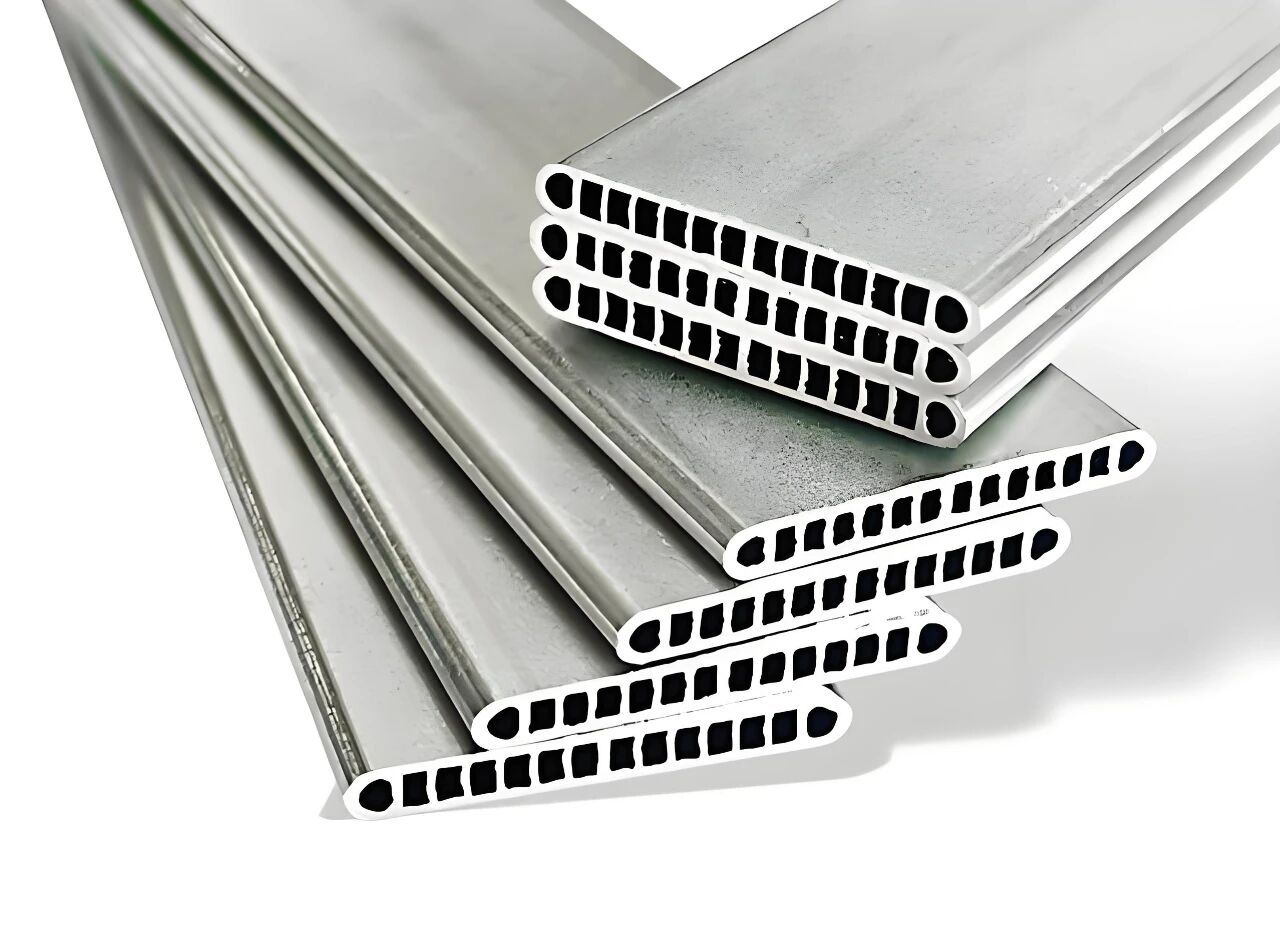微通道鋁扁管是一種內(nèi)部帶有多排平行微孔道的鋁合金扁平管,其核心特點(diǎn)是傳熱效率高、輕量化且結(jié)構(gòu)緊湊,能顯著減少制冷劑充注量。它被廣泛應(yīng)用于汽車(chē)空調(diào)冷凝器/蒸發(fā)器、家用空調(diào)及商用制冷設(shè)備中,是實(shí)現(xiàn)熱交換器高效節(jié)能與環(huán)保的關(guān)鍵部件。